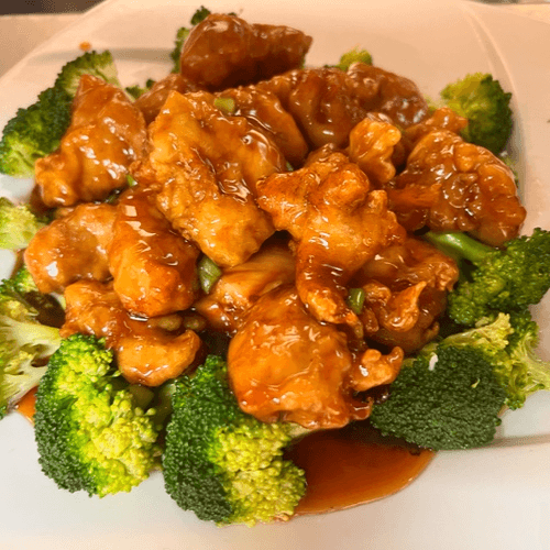Lightly breaded dark meat, tossed in a tangy, spicy sauce with broccoli with a side of white rice