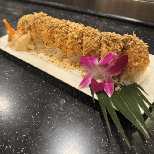 Tempura shrimp and pineapple topped with spicy crab, coconut sauce & toasted coconut