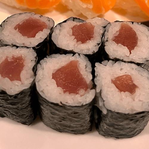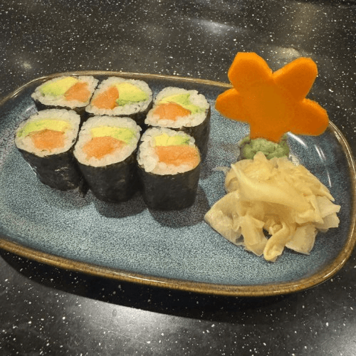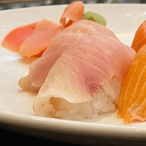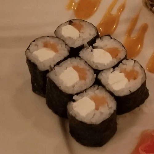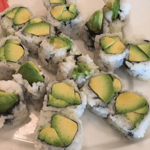 5 pieces. Yellowtail, cream cheese and avocado with a deep-fried outer wrap