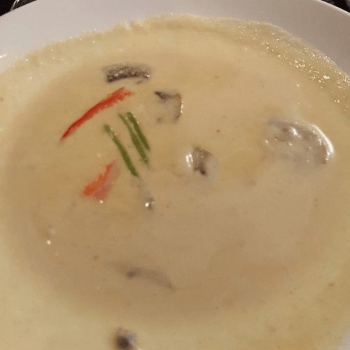 Creamy coconut base with chicken, lemon- grass, mushrooms, bell peppers and snow peas