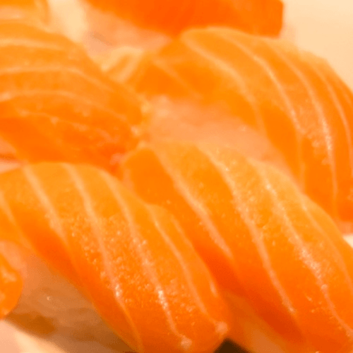 Fresh sushi grade salmon brushed with teriyaki sauce