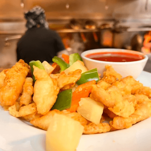 Lightly fried in a tangy and sweet hot sauce with pineapples