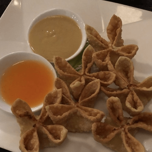 5 pieces. Tempura fried spicy crab with pisces sauce on top